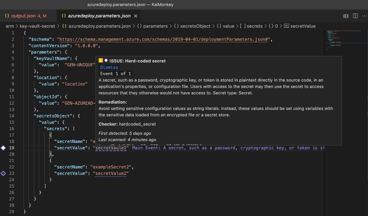 When, or in what context, is it optimal to detect embedded secrets? It’s best to minimize the risk of pushing secrets downstream. As such, detecting secrets while working inside the IDE can both minimize the risk of publishing secrets as well as reduce the remediation effort. Late-stage detection creates more work for everyone, including for yourself as you close out tickets and make additional commits. With Code Sight running inside IDEs like VS Code and IntelliJ, secret detection occurs in real time. Developers can quickly review a detailed description of the issue and get remediation advice to help mitigate or eliminate the risk.