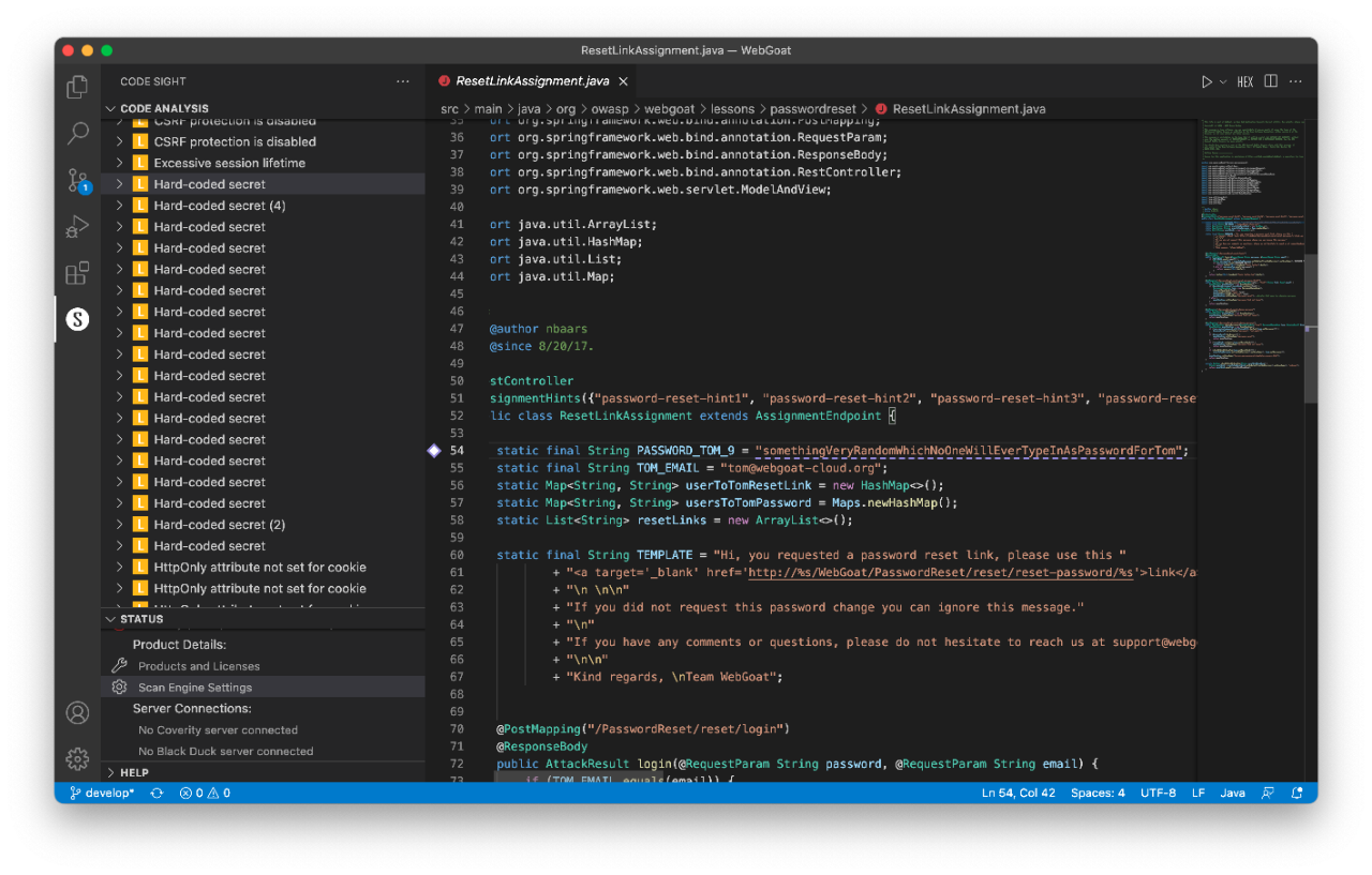 The quickest way to experience Rapid Scan Static’s secrets detection capabilities is via Code Sight. Download Code Sight from the VS Code Marketplace or from the JetBrains Marketplace (IntelliJ) and jump in with a free trial, or import your team’s license if you are already a Coverity or Black Duck user.