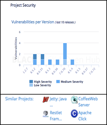 At some point, continuing security issues or a declining level of support from the open source community may spur you to look for similar components. In this case, Open Hub provides a list of similar projects, as rated by the Open Hub community of over 300,000 users.