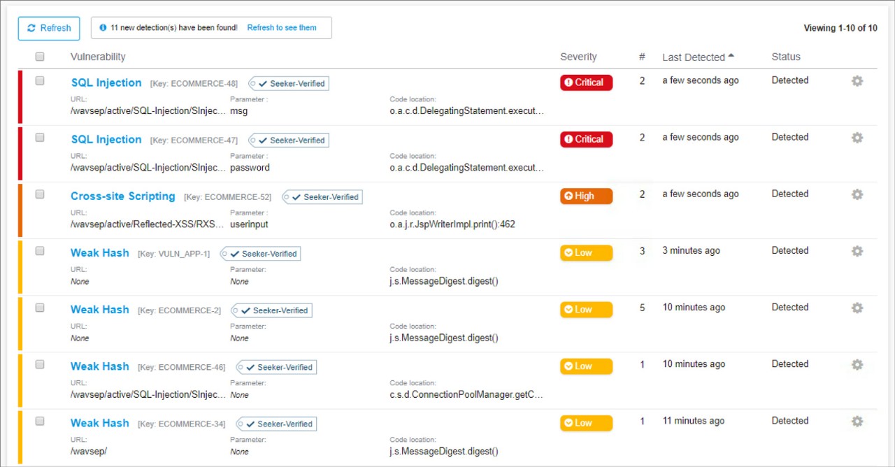 Get insight into vulnerabilities, security misconfigurations, or other exploitable conditions that only manifest at runtime, without modifying your existing manual or automated functional tests. Monitor application behavior in the background of your preproduction runtime testing with interactive application security testing and automatically verify results so you aren’t distracted by chasing down false positives.